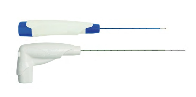 • medical grade stainless steel cannula, totally isolated (except for the exposed tip) and centimeter-marked